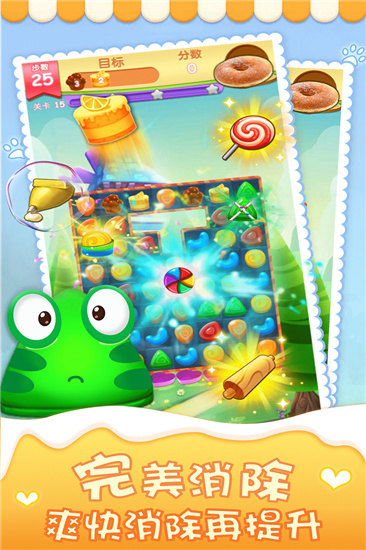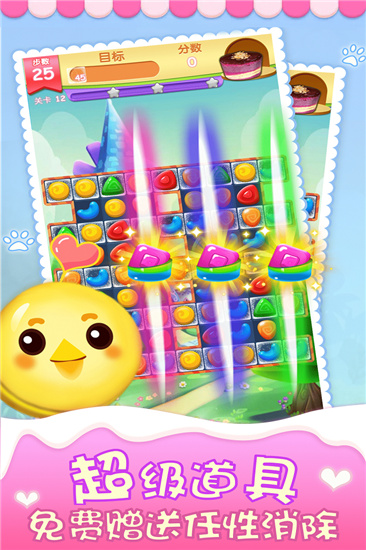 3、精灵消消乐游戏里色彩的搭配非常鲜艳,还有欢乐的背景音乐,简单的手指移动,精彩搭配消除更多