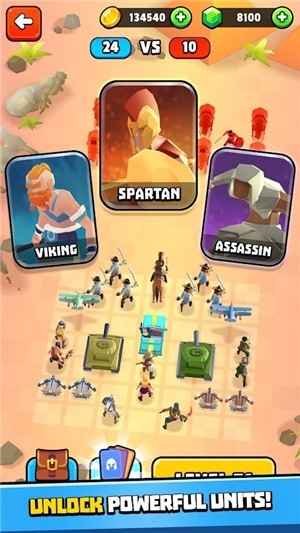2、清新简约的艺术风格,深度和令人上瘾的渐进系统,培养战争中的无双战士;