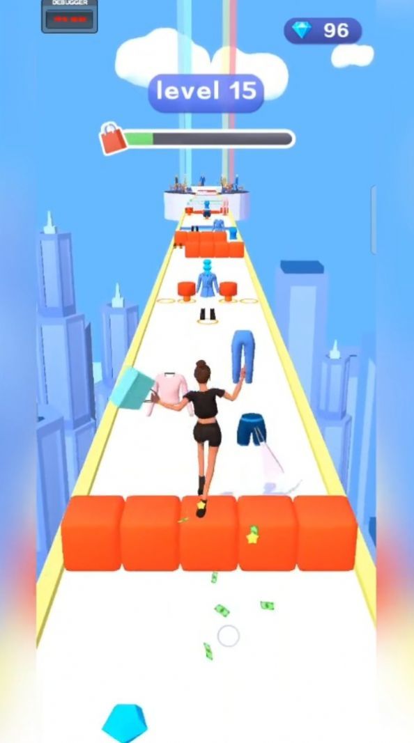 姐是购物狂游戏是一款疯狂购物收集沿途的钻石,因为撞到了就会让你损失购物袋,两只手上提着各种购物袋,然后走出潇洒的步伐冲刺向终点。