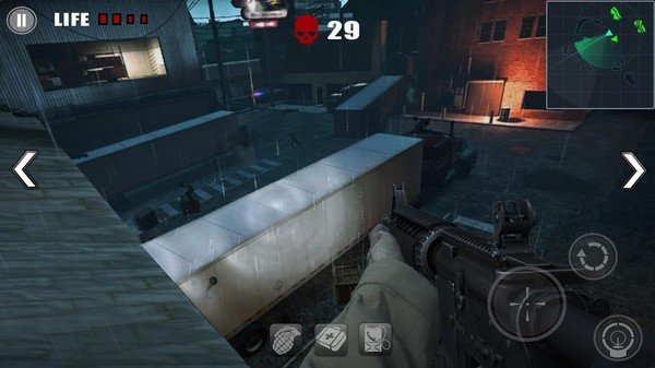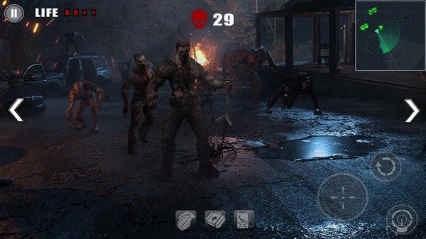 1、超大的地图,各种真实环境模拟,你可以一边射击僵尸一边欣赏沿途风景;