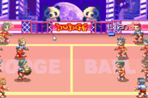 相信大家对躲避球这个游戏规则都不会陌生,玩家不仅要注意接到球,而且反应要快,不能被球击中身体。gba超级躲避球分为冠军杯赛和表演赛两个模式可以选择,还可以利用两条GBA进行联机对战。