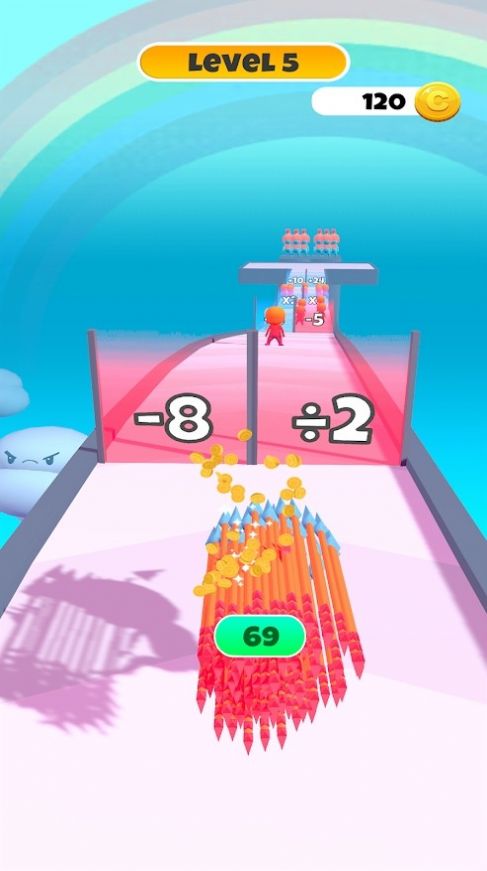 箭节游戏是一款非常有趣的休闲闯关类游戏,这款游戏非常的考验玩家的计算能力,游戏中玩家需要控制箭矢进行闯关挑战,赛道上面有着许多的透明门,门上面会有计算数字,当你控制箭矢通过这扇门的时候你的箭矢数量就是按照门上的计算方式和数字进行增加或者减少,最后到达终点的时候箭矢需要达到一定的数量才可以过关哦。