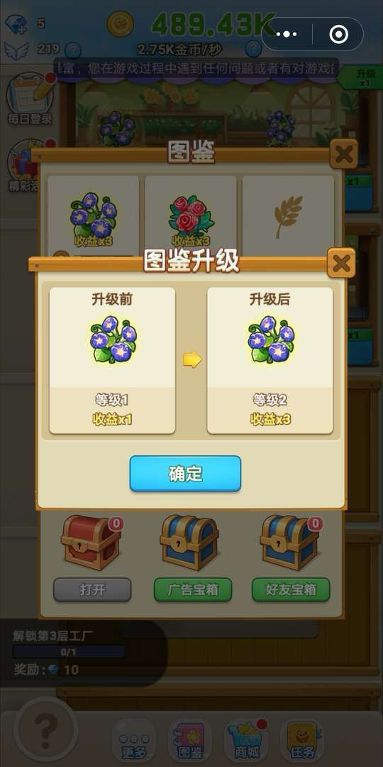 2、优先升级高级的工厂可以让你尽快获得更多的金钱,购买加速道具来提升工厂生产能力;