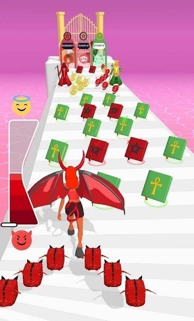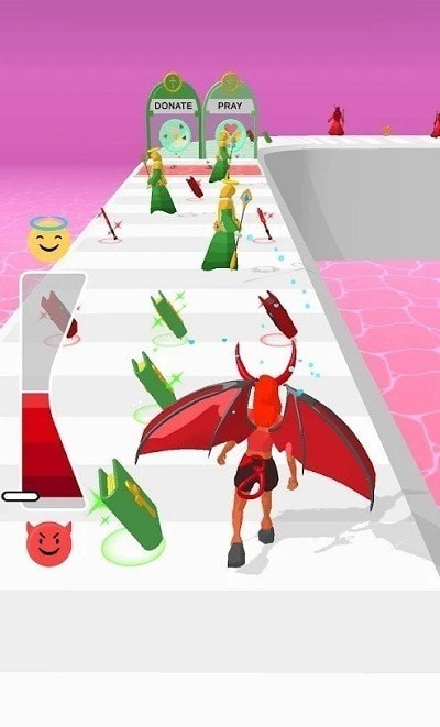 2、玩家在Destiny Run游戏中可以变成天使或者恶魔,游戏中有各种陷阱困难,你可以变换形态去解决这些困难。