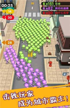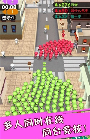 1、城市中有超级多的人,在奔跑的过程中你会征服中立的人们,让他们会加入你的奔跑大军中,