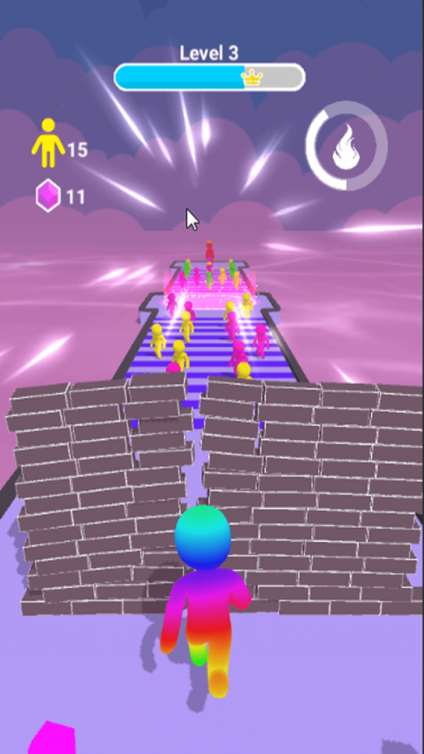 4、开始独自奔跑,并在途中聚集许多人。带领您的团队克服各种移动,旋转和扩展的障碍。计算跑步中的举动,并尽可能多地保存人群。
