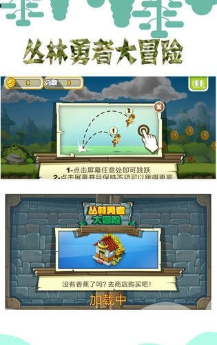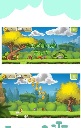 丛林勇者大冒险是一个横屏闯关游戏,玩家化身一只小猴子,在森林中跳跃、奔跑,收集金币、道具,但是要注意躲避障碍物.利用道具完成闯关,丰富的游戏关卡,趣味的玩法.