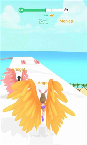 游戏中玩家将在一个巨大的跑道上收集翅膀,玩家收集的翅膀越多背后的翅膀越大奔跑的速度越快,玩家将依靠翅膀的飞行能力不断飞行不断收集翅膀直到第一个到达终点成为天使,游戏玩法简单有趣感兴趣的快来下载吧。