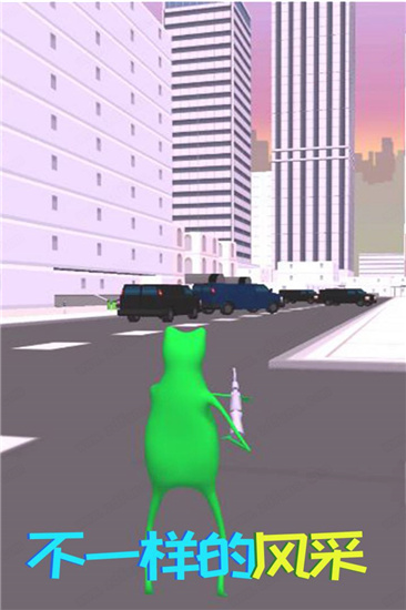 1、疯狂的战斗模式,长相奇特的青蛙,3D模拟城市,未知的危险和艰巨的任务,青蛙的疯狂战斗开始了。