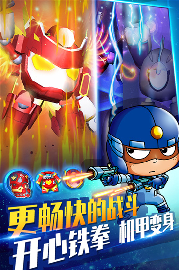 开心超人机甲联盟是一款十分Q萌的动作格斗游戏。游戏不仅拥有非常Q萌的游戏画面,还加入了非常之多的炫酷角色,如开心超人、粗心超人、花心超人、宅博士等等,还有反派大大怪哦,每一个角色的属性和技能是不一样的,而且每一个角色又有着不同的变身效果,完全模仿了动漫里面的变身特效,每个超人变身又有他自己相应的特征,不同的角色有不同得实力,加上功能与外观各异的弹幕,给你带来炫酷无比的视觉体验,体验到那种激血畅爽的打击快感。但是出了几个免费得的角色之外其余的超人都需要花大量的金币钻石购买,基本上只有用人民币才能够得到了。为此,本次小编给大家带来了开心超人机甲联盟内购版,游戏已修改为无限金币钻石,内购全部免费,想要多么炫酷的超人角色都能够拥有,喜欢的朋友抓紧时间下载吧!