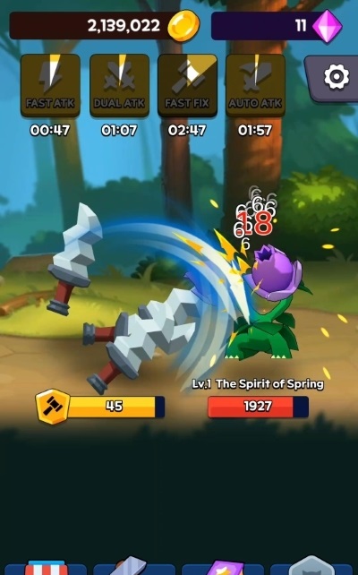 2、你只需点击几下,就能养成一把剑。当金子聚集时,你可以加强剑,更容易打败怪物;