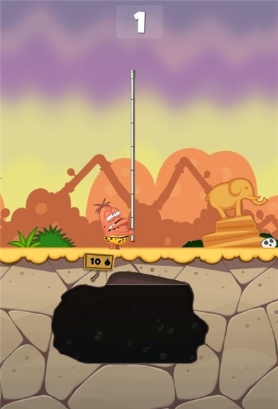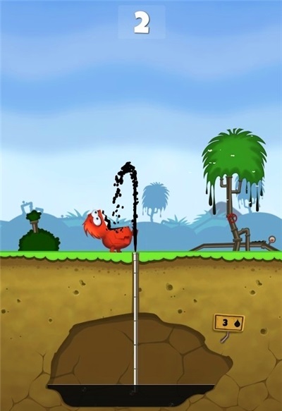 1、游戏中玩家通过长按屏幕控制油管的长度来让小怪兽喝到地底的油;