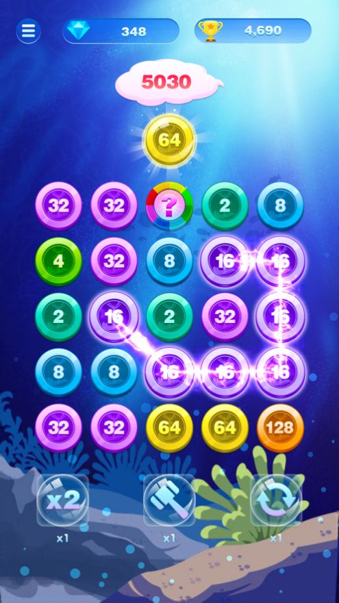 泡泡2048海底连连看作为一款很好玩解压的休闲益智游戏,游戏的换面很精致,玩法很有趣,我们需要将游戏中相同的数字连线合成更大的数字,数字越大的份越高,游戏越到后面难度越大,游戏中还会提供道具,作为一款可玩性很强的游戏。