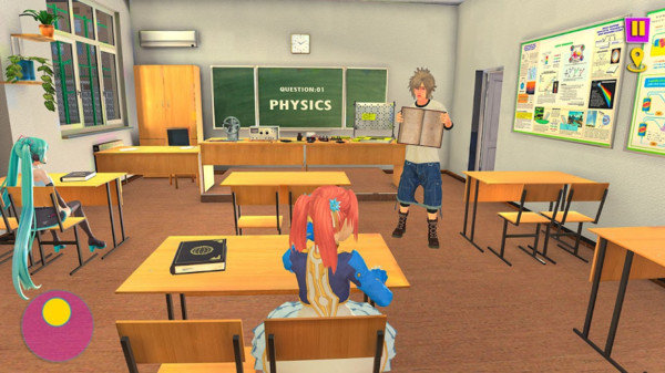 游戏中的人物都是动漫画风的,游戏的场景就是一个校园里的场景。