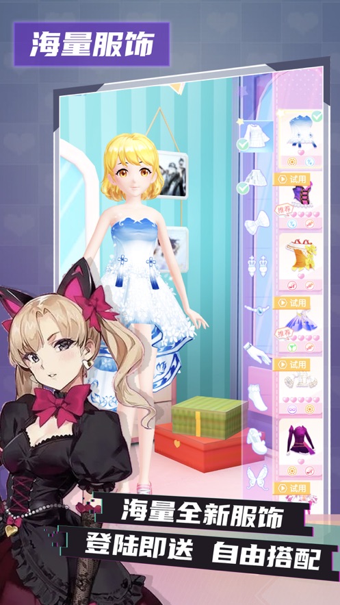 1、美丽的服饰搭配,让你的偶像每次出场都让人惊艳不已,学习各种技能。