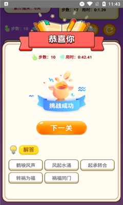 2、大量的有关成语的题目等你挑战,答对还有释义展示;