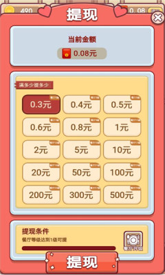 闯关5级0.3元,连续闯关到25级奖励5元。