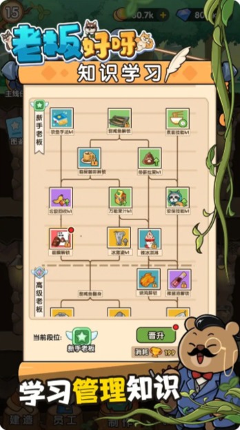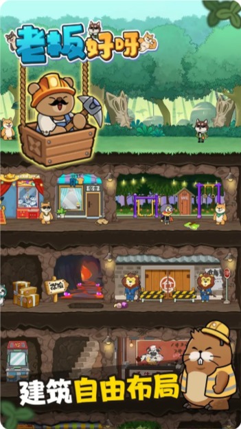 老板好呀这款手游,有着搞笑的卡通风格,带领森林中的小动物们开设公司,通过地下空间来通过作坊做起,分割出一间间房子来做各种功能的办公室,可以自由布局,根据不同小动物的属性来进行管理。
