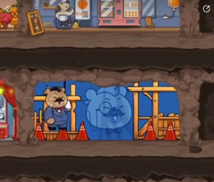 2、熊管家穿上一身矿工服,拿著铁锹,坐上古井的木桶向更深的洞穴探索。