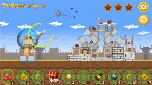 燃烧的堡垒非常适合朋友之间一起娱乐,游戏有一定的竞技性的同时又十分益智,非常推荐。我们还可以使用岩石的碎片达到意想不到的卓越效果,我相信您一定能成为投掷冠军的。