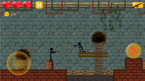 3.左下角进行攻击,右下角可以让您的火柴人进行移动或者跳跃动作。
