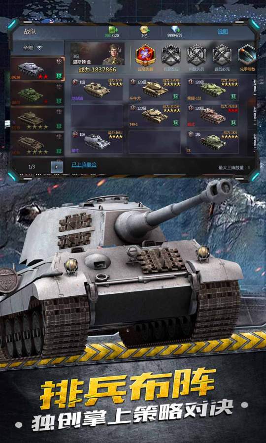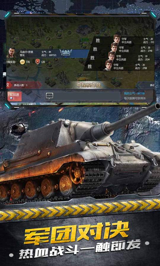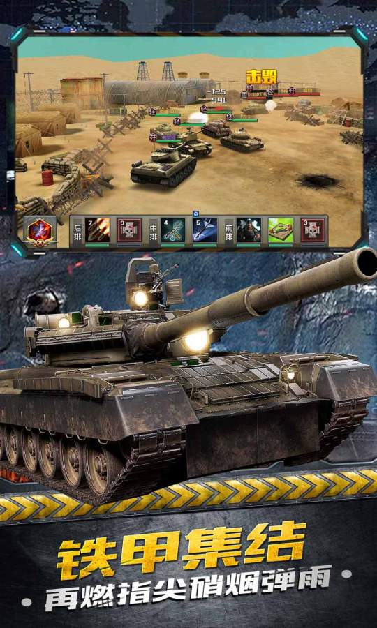 2、携带不同的名将、特殊战斗单位进行辅助攻击,收集和养成坦克组建自己的装甲部队;