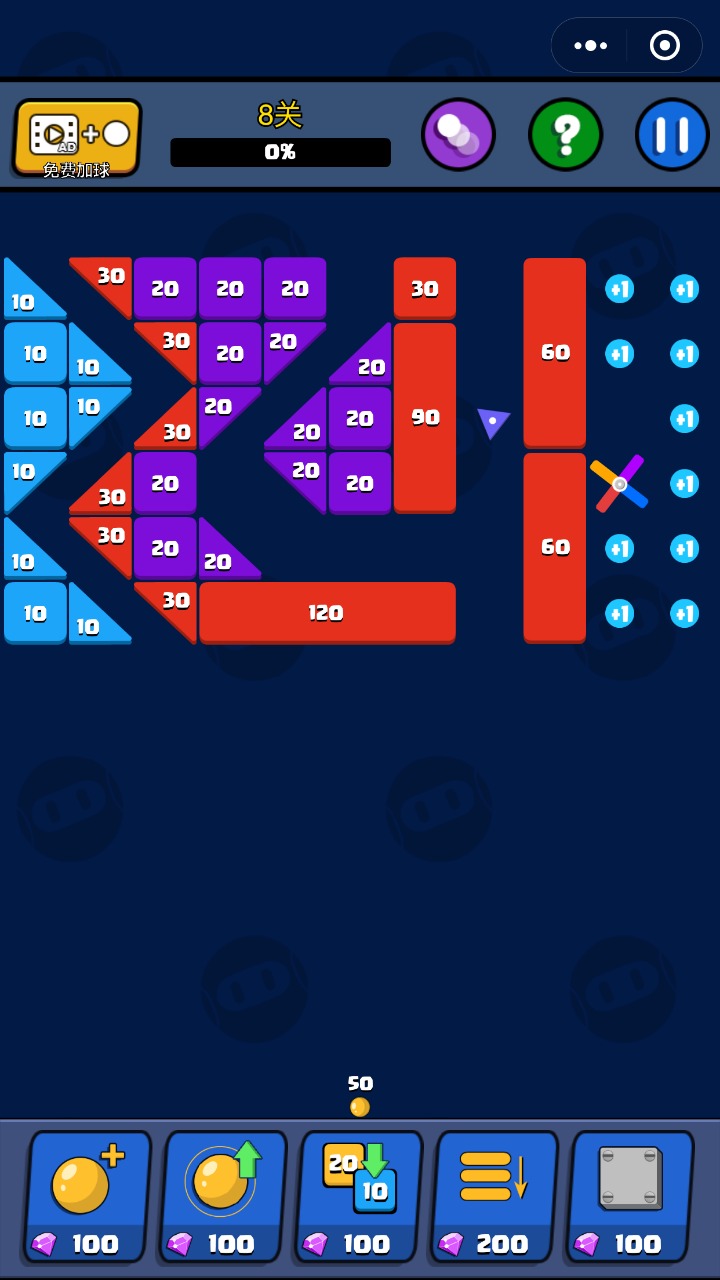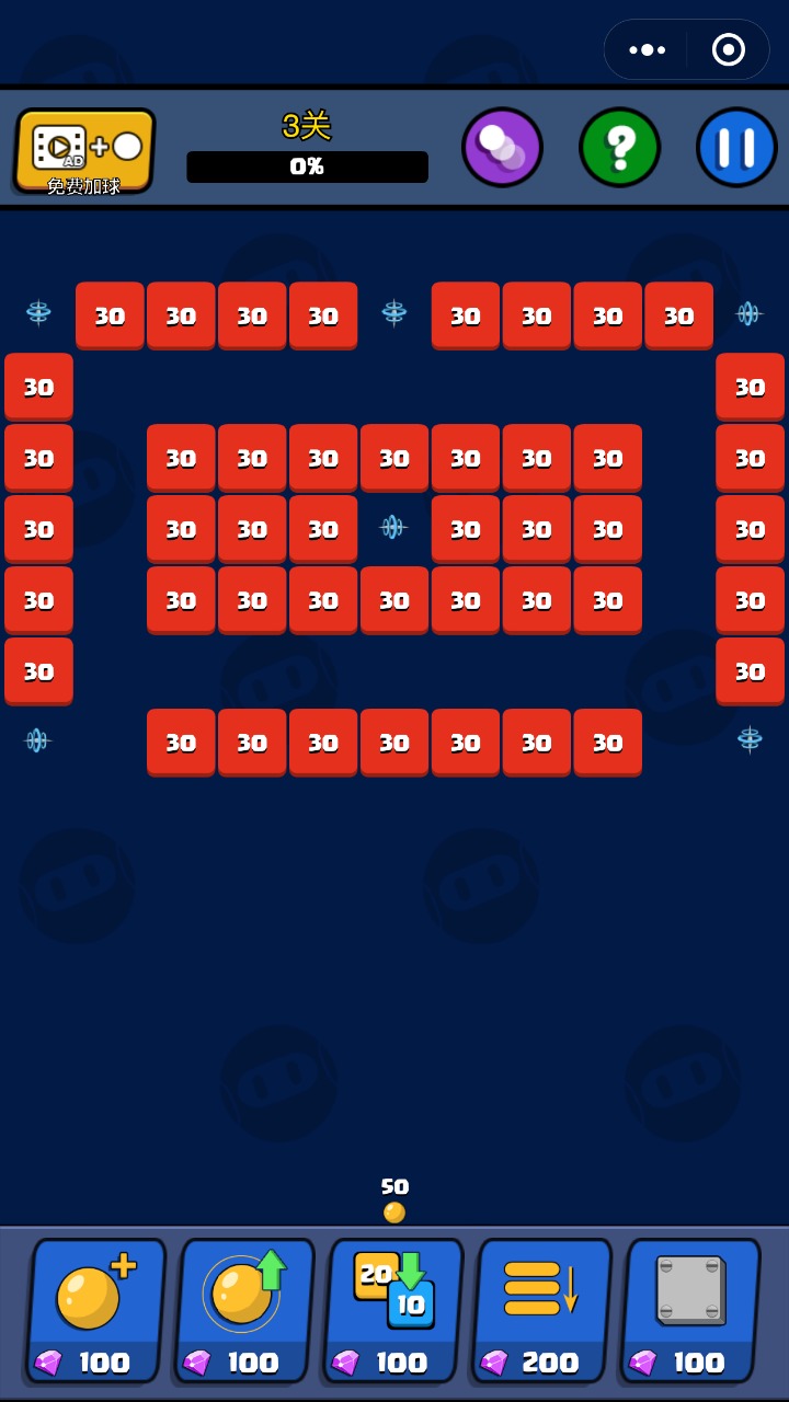 3、准确瞄准有技能的砖块,发射小球球球,使其击碎更多有技能的砖块。