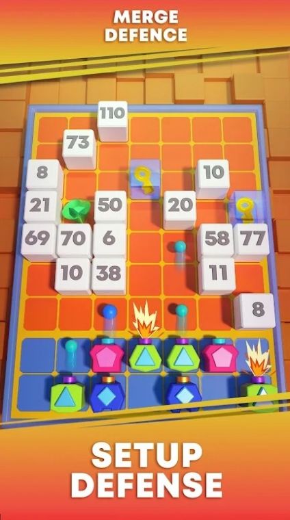 合并你的火炮来防御魔方军团的进攻!你可以在你的武器库解锁各种类型的火炮;