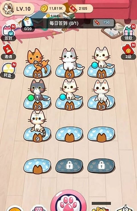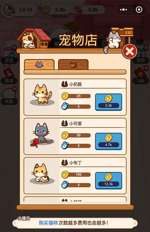 3、所有等级的猫咪对应着不同的财富,你可以将这些猫咪出售来获得这些收益。