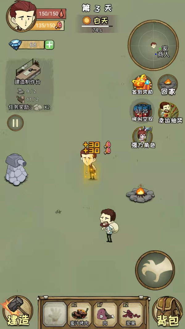 2.将通过制作庇护所,寻找食物,狩猎动物,建造生存工具并尝试生存来为生存而战;