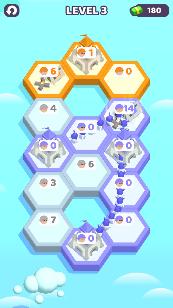 3、占领更多六边形的格子才能获得成功,闯关也是需要一定的策略性的噢。