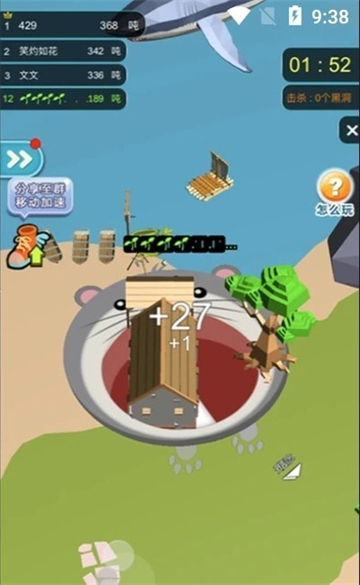 3,不断的去进行控制你的黑洞吞噬各种物品,壮大你的体积,将所有的玩家们全都吞噬掉吧。