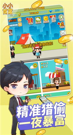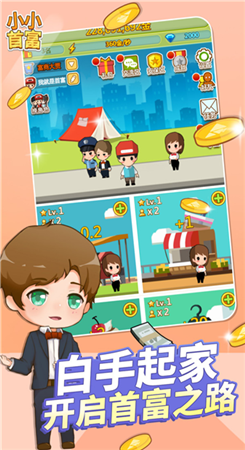 小小首富真正无限钻石作为一个让你实现从草根逆袭成为世界首富的创业模拟游戏,在这款小小首富真正无限钻石手游当中,在游戏里面玩家需要从一个平民开始,不断地进行历练,通过运用你高超的头脑,最终成为一代富商。感兴趣的小伙伴快来下载试试吧!