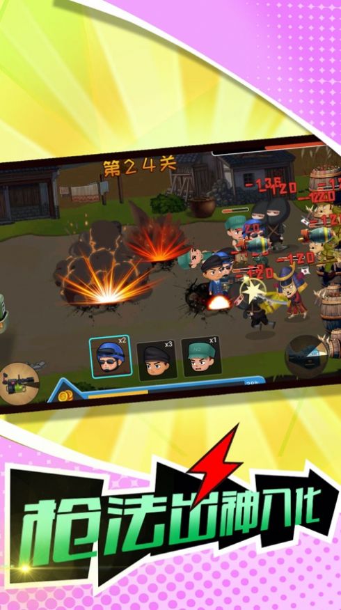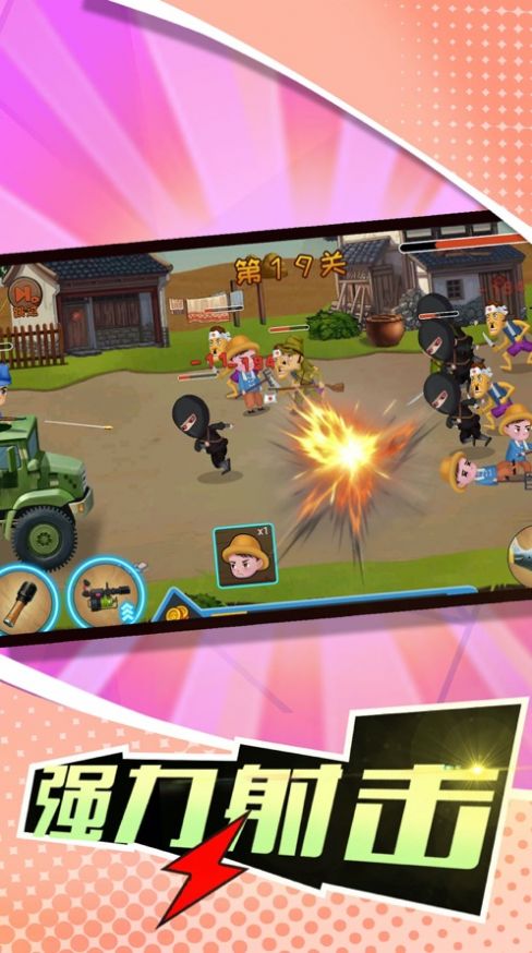 鬼子进村枪战王者作为一款简单有趣的射击闯关游戏,为了保护自己的村子,你需要集结更多的战士来进行防守,鬼子的队伍人数众多,你需要提升自己的火力,才能歼灭更多的敌人,丰富有趣的道具可以自由解锁,快来完成精彩的抗战,对抗这些坏蛋吧,自由排兵布阵,解锁英雄的更多站位搭配,让自己的村子足够的安全,你还需要招募更多的村民来帮助你战斗哦。