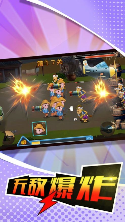 2、带领劳动人民奋力抵抗来自鬼子们的入侵,多样化的技能和兵种可以让你应对任何环境下的关卡。