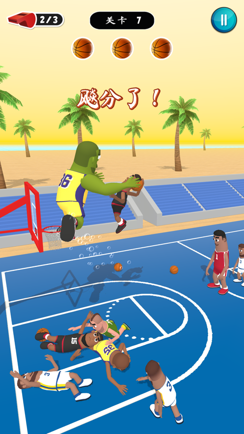 2、精美的图像:令人震惊的艺术风格、动画和音效让这个花式射篮游戏看起来更加真实;