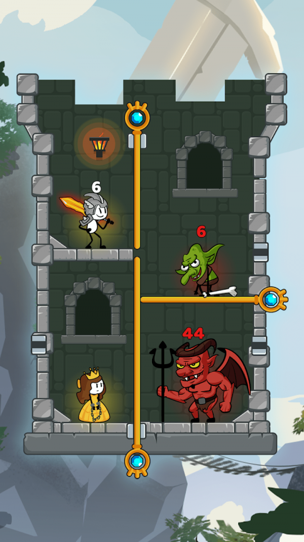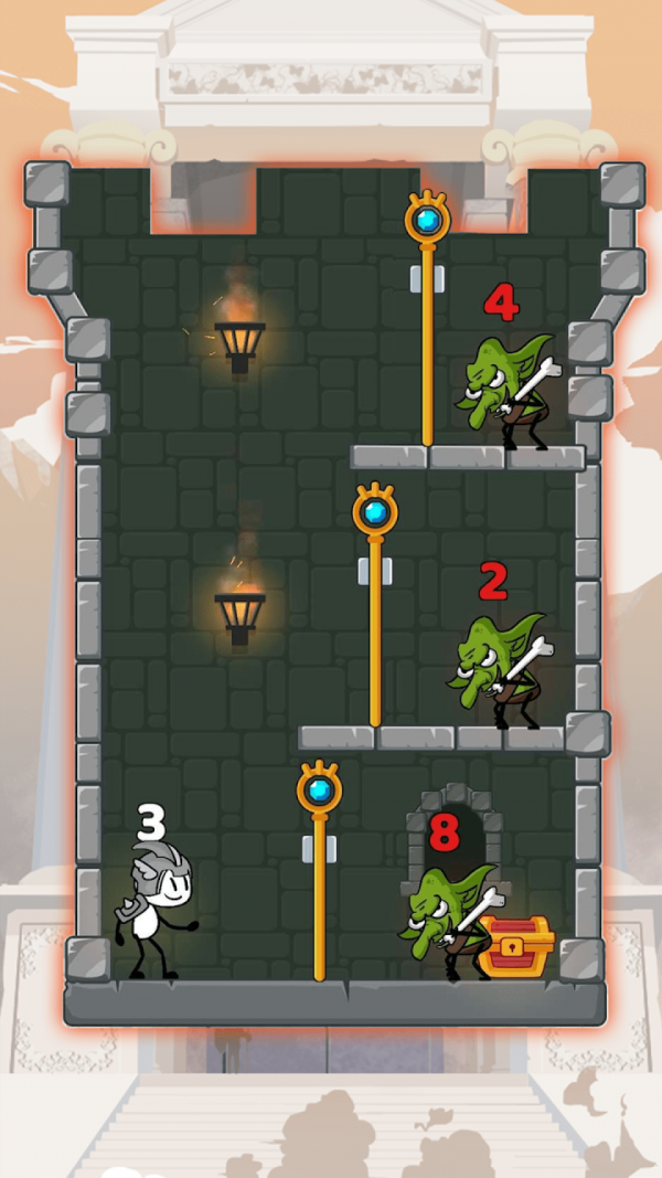 火柴人传奇骑士作为一款卡通动作玩法类型的经典具有解谜元素的动作游戏。你的工作很简单:拉动别针,你的骑士将与敌人战斗。火柴人传奇骑士手游中你会看到他的力量随着每场战斗而增长。你的使命?杀死所有敌人并拯救公主或获得更多宝藏。很简单,但在你采取行动之前要三思。