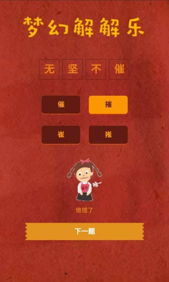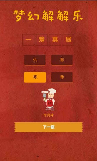 梦幻解解乐梦幻解解乐作为一款趣味性非常强的休闲益智类手游锻炼出来的结局最满意,这作为一款有趣的成语休闲益智游戏,在游戏里玩家可以根据缺少的字数猜成语,喜欢这款游戏的玩家就赶紧下载试试吧。
