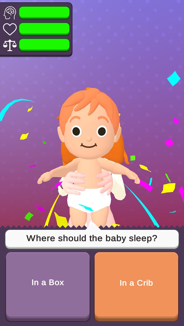 父母的抉择作为一款需要你照顾宝宝的休闲模拟类型的手游玩家需要做得就是根据游戏背景的发展,养自己的小孩子在这个游戏中将会做出各种各样的选择,小编给大家带来最新安卓版本,在游戏里玩家可以在这个游戏中学会理解父母的苦心。