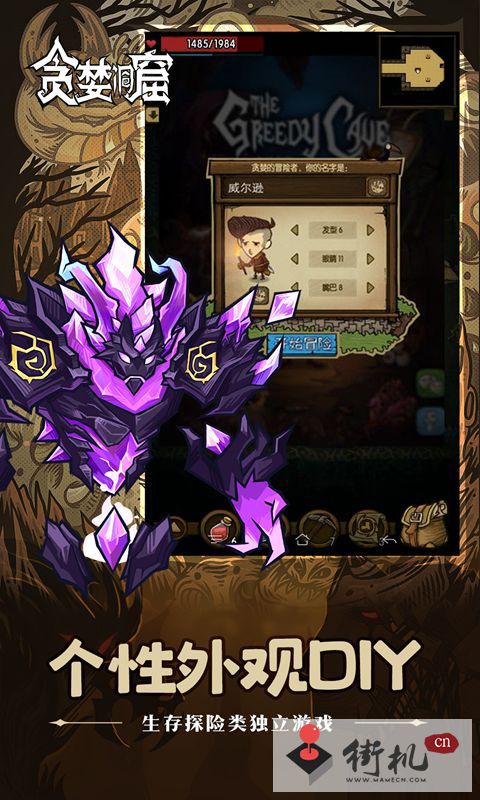 RPG游戏的核心玩法就是打怪升级爆装备,这也是这 类型游戏最吸引人的地方。在这一点上《贪.婪洞窟》的设计可以说是十分成功的。2种难度,100层随机地形洞窟,60多种不同的怪物和BOSS。我们可以注 意到这里说的是随机,也就是我们每次计入洞窟时的地图都是全新的,这样便不会有一种循规蹈矩的无聊感。深度足够的地图,种类复杂的怪物都十分吸引人。