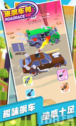 1、彩绘卡通风格的游戏场景,炫彩的驾驶特效很震撼;