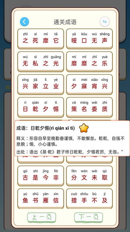 一款优质有趣的成语猜谜游戏,真的很好玩。在游戏里玩家必须准确填写单词。