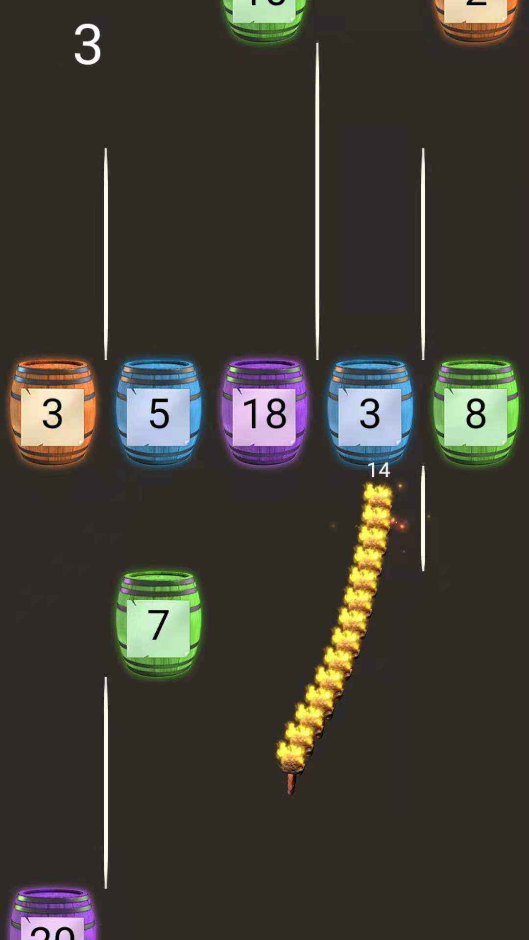 3、就能收集起来,遇到木头,就会烧掉,突破过去,看看能突破多少个木头。