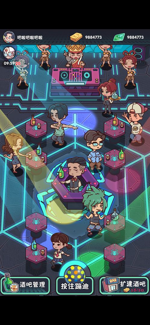 一起来蹦迪游戏作为一款超级好玩的模拟经营游戏,在游戏里玩家在游戏里面模拟经营自己的迪厅,你需要好好装修自己的迪厅,雇佣很多美女服务员为客人服务,请一个有实力的DJ,出去宣传你的迪厅,这样你的生意肯定会非常的好,盈利后记得扩大门面继续盈利哦。