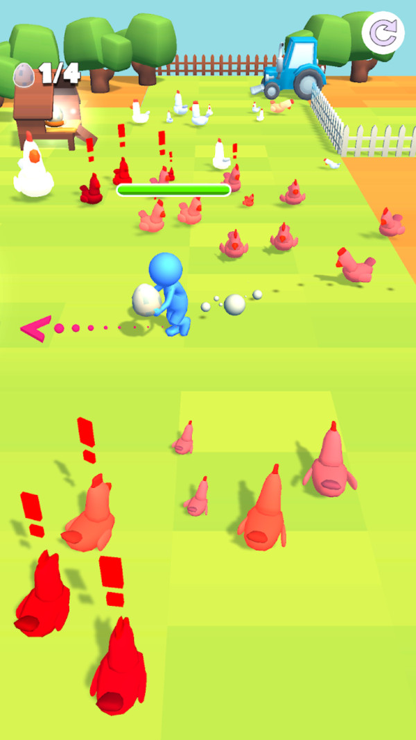 偷蛋农民游戏作为一款十分具有挑战性的休闲闯关游戏。以极具创意的偷蛋玩法为主题,作为农民的你在不同的关卡之中需要进入到不同环境的鸡舍之中偷取老母鸡的蛋,在进行偷窃的时候一定要小心翼翼,不要被老母鸡发下了,不然它们会愤怒的追着你啄。