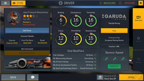 3、游戏内增加了许多新赛车手,每个赛车手的能力属性甚至是个性都各不相同。