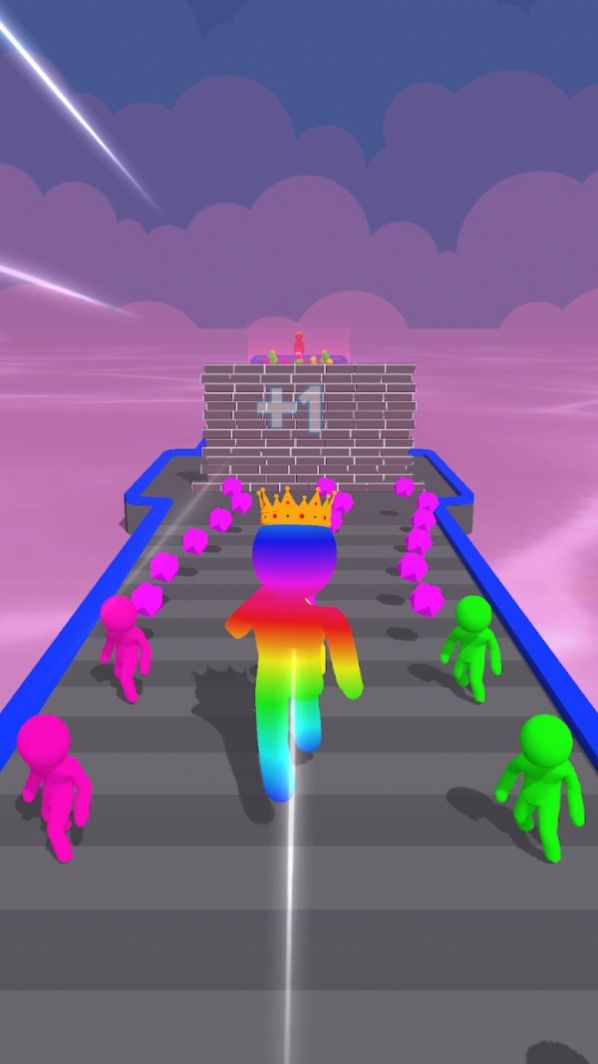 游戏游戏的操作非常简单,只需要一根手指即可完成控制。玩家通过左右移动收集跑道上的小人;