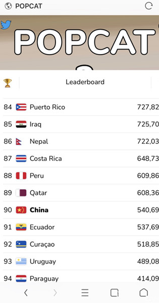 1、玩家点击屏幕即可累计点击次数,而随着点击次数的增加,图中的popcat也会发生变化;