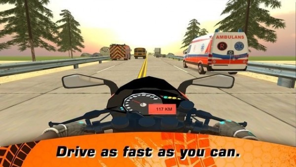 2、玩家可以控制摩托车,在道路上行驶,不断加速超越其他车辆,并体验驾驶的快感。