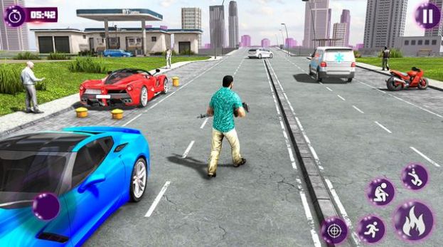 2、在城市中可以自由飙车,驾驶你喜欢的汽车在城市汇总行驶,和警察来一场追逐大战;